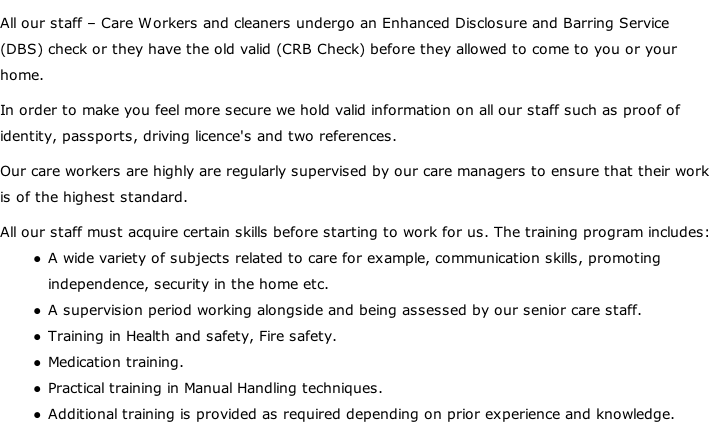 Our team of carer’s are managed by Mrs Carol Jackson who has worked as an health care professional for many years, she is are our main assessor and her professional and friendly manner will help us determine what help you require.